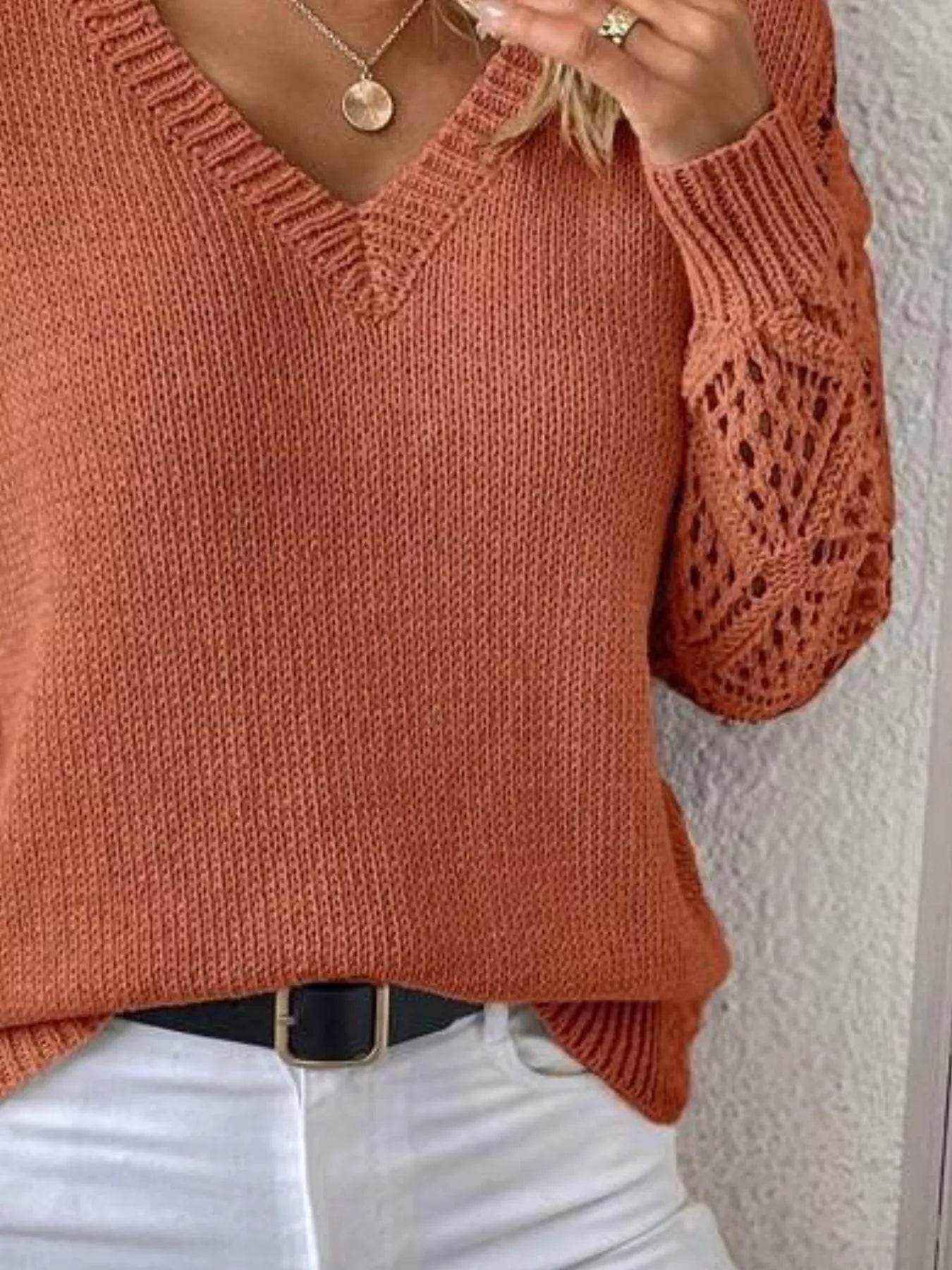 V-Neck Hollow-Out Sleeve Knit Sweater